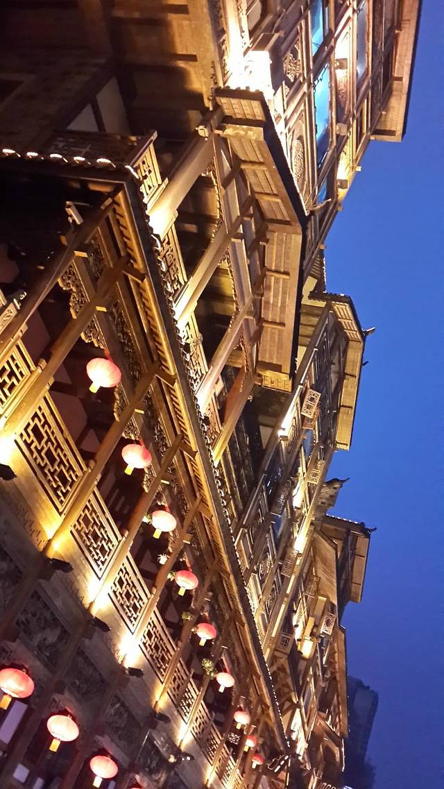 晚上的江边,景色。。。怎么说了,可能也见过不少,没啥感觉,重庆的感觉就是,你从这里进入一个楼,上了几层,或者下了几层,哎?发现自己又在一楼了有没有。。。我们走着去的江边,进到电梯,发现自己在9层。下去后发现,这里是个卖东西的地儿,卖的东西和瓷器口很像,甚至连名字都带瓷器口。。。走出去看,再从下往上顺着山路一侧爬,才发现了重庆吊脚楼的美妙之处,此处埋下伏笔,待夜游两江再细说。。。