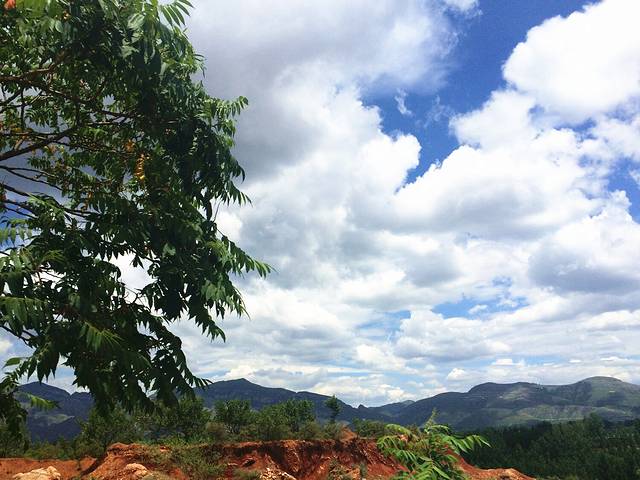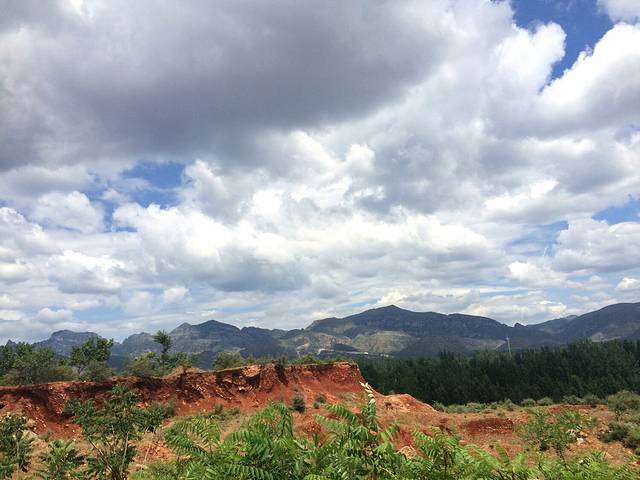 出了北京没多久,就突然发现我们路过了一片红土地,土地红的眨眼,道路一旁红土变天,道路另一边,山峦起伏,加之蓝天白天,感觉水天一色,突然觉得生活顿时变得美好,可惜,准备拿起相机那一刻发现匆忙之间,没有充电,没有充电器,只好作罢,用双眼去尽收眼底,用手机留下一丝美好。