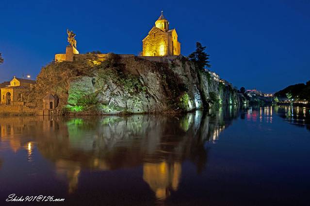 库拉河在第比利斯穿城而过,在转弯处的峭壁上,是著名的麦戴合教堂和第比利斯之父雕像;