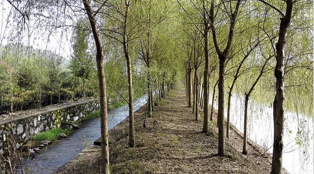 开始这段路没按常规走郴州大道,选择村边的水渠,渠下清流渠边垂柳,消减了秋老虎的威风。