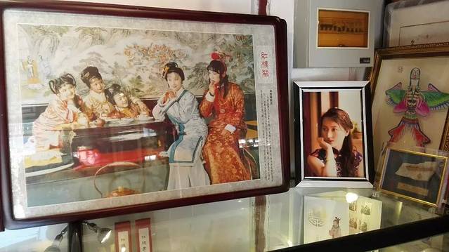 大观园里面有两间屋子里面摆放着红楼梦演员的照片。一个是文化馆,一个是风筝寻梦。文化馆记录着关于北京大观园的由来。风筝寻梦是有关风筝传承记录、制作的一间屋子,里面也有红楼梦的演员照片及其他代表人物的照片。我照了几张就是林黛玉的扮演者,佳人依旧,风味犹存,只是人已早去,她的演绎很多人都说演到了生活中或者说自己就是她。谁是谁不重要,重要的是她的影响力远远超乎世人的俗。