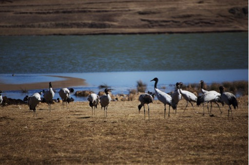 大海子是黑颈鹤的越冬栖息地,是一个不大不小的高原湖泊,湖水清澈见底,四周山峦起伏。因为优越的环境,每年农历十月,待候鸟从遥远的北方飞来过冬时,会有众多的游客前来观赏