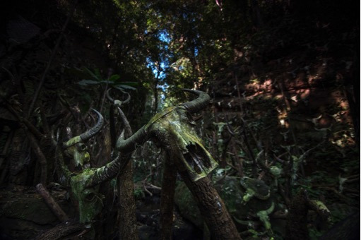 世代居住在阿佤山上的佤族信奉万物有灵的自然崇拜,自古以牛为神圣吉祥物和崇拜图腾。日积月累,这块圣地已供奉3000多具作为“牺牲”的牛头。