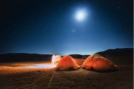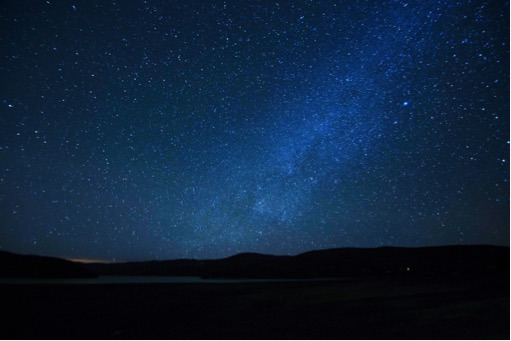 开车前往跳墩河水库寻找合适的地方扎营。随着夜幕的降临,苍穹之上出现了壮阔的星河,银河横跨东西方。当流星从华丽的星空中划过的瞬间,仿佛忘记了寒冷,感受到了自然界的壮阔之美。