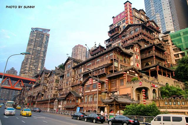 洪崖洞,重庆旅游业的一大招牌,以最具巴渝传统建筑特色的吊脚楼为主体,依山就势,沿江而建,独领风骚。