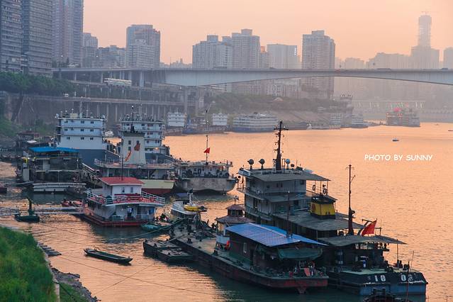 忙碌了一天的工人,将船只停靠在岸边,纷纷跳下清澈的嘉陵江,在清凉的江水中,洗去炎热和疲劳。 在夕阳光线里,那些船只也都披上了一层暖光,河水流淌,渐渐远去,只有这宁静的时分,被凝固下来。