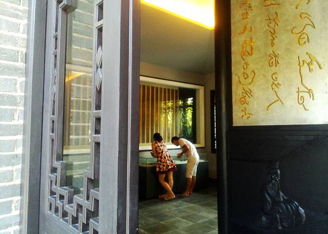 雕像两旁墙上装饰《过秦论》竹简,《过秦论》是贾谊政论散文的代表作,分上中下三篇,我没有细读。竹简下面的玻璃柜内陈列着贾谊的研究著作,我知之甚少。作为一名工科生,又从事着机械工作,每天和图纸、钢铁打交道,历史及人文知识欠缺得很,想着从今后恶补这方面的知识。
