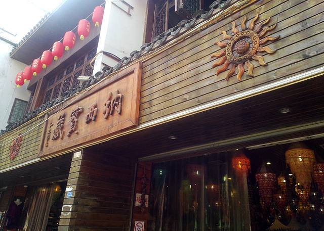 这是一家卖民族饰品的店铺,是不是真的藏品我辨别不出,如果要买藏饰藏物我想我会到西藏去买,那样也才会有意义。不过店里的商品玲琅满目,进去逛逛也蛮好。