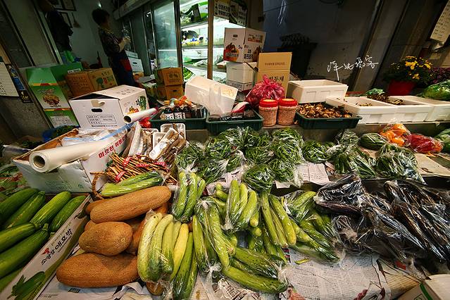 市场里的蔬菜全部去除泥土,整理的干干净净后才进行售卖。曾经听朋友说,韩国对食品安全要求特别严格,这里的蔬菜绝对杜绝农药残留,市场上售卖的蔬果,随便擦拭一下就可以直接入口。