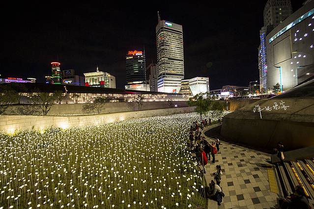 首尔东大门设计广场(DDP)每晚19:00-22:00会有两万朵LED白玫瑰被点亮。