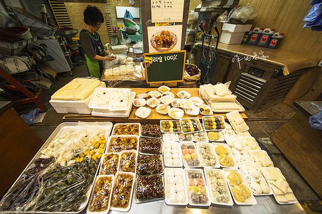 各种地道的特色小吃,请留意后面的牌子价格,按2015年9月26日人民币外汇牌价计算,10000韩元=53人民币元左右,那就是说,每道美食才10元左右,无论是在价格、味道上在景区里都是绝对买不到的。