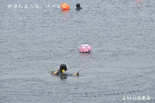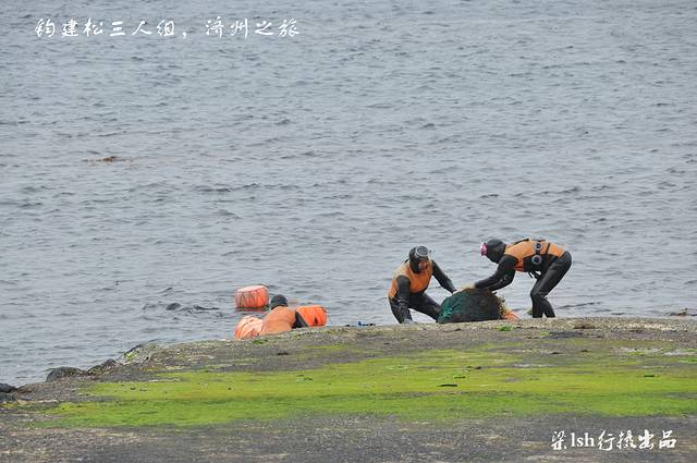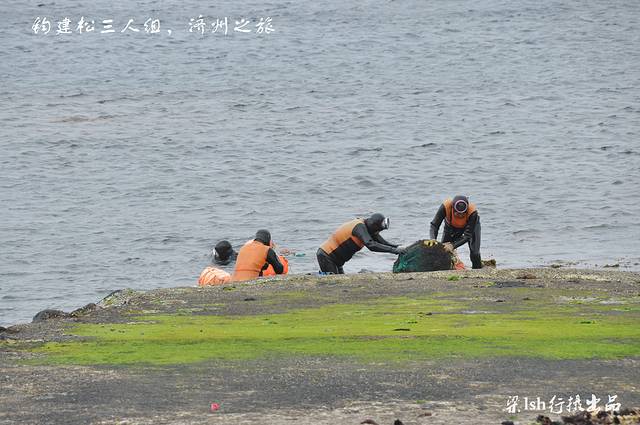 下山的途中看见一条岔路,通向一个半圆形港湾,亲水处还有一座小木屋,听上来的人说刚看完海女的表演。