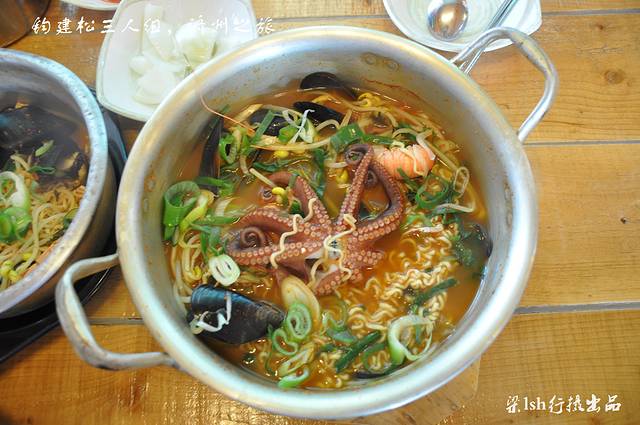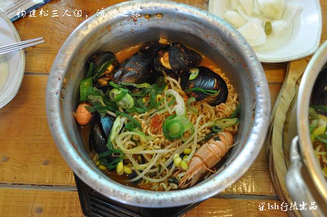韩式火锅,味道感觉一般。或许自己是重口味,不太适应韩国较为清淡的口味?煎鲅鱼在国内很少见到,我们常吃的是鲅鱼馅儿饺子。味道?还好吧。