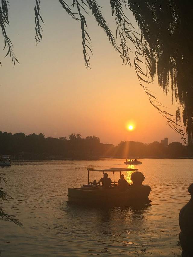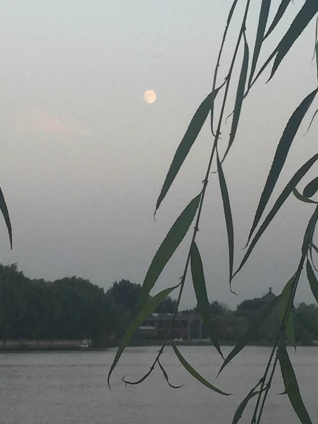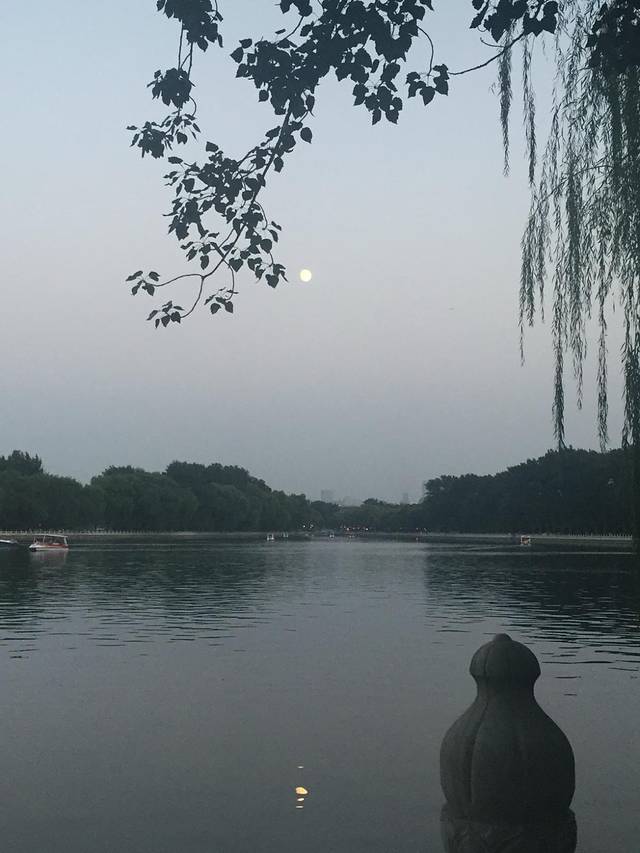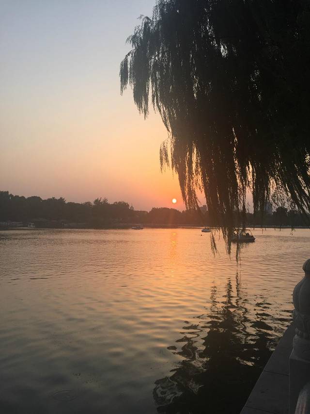 因为快要中秋了,计划着在后海看日落看月亮,所以在后海走走停停,转了一大圈。旁边都是酒吧,会有很多歌手在唱歌,喜欢又不想去酒吧,可以在柳树下坐着听听。