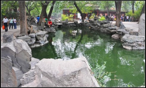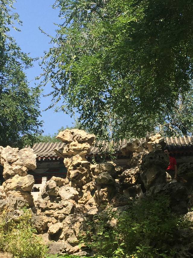 从亭子向下看,双龙抢珠就比较明显了。这个院子一进来的第一印象就是大,后来查了一下,的确比御花园还要大,和珅真是厉害啊。
