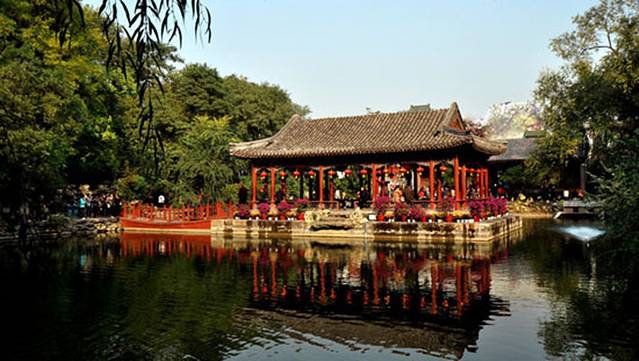 蝠池不仅在造型上有心意,在各方面更是用足了心思,在池旁遍种歪脖榆钱树,榆钱谐音余钱,在成熟之时,榆钱纷纷落入池中,这个池子就变成了一个聚宝盆。