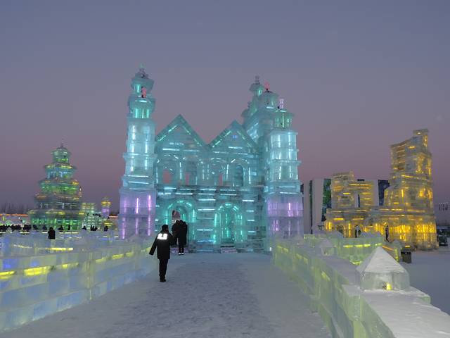 下午3点到哈尔滨,直接去冰雪大世界看冰灯,此行的重点呀