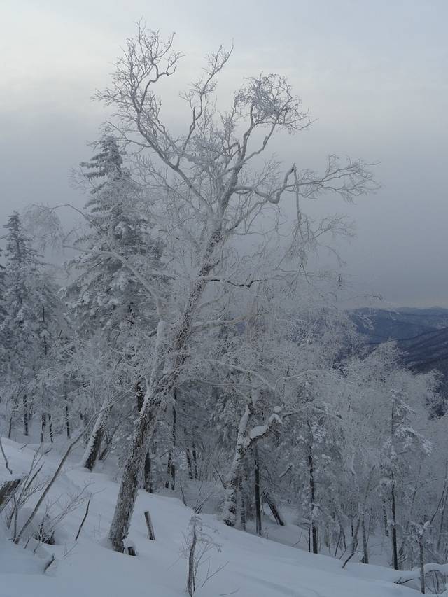 早饭后原路返回哈尔滨,下了一夜的雪,大秃顶子山更漂亮了,尤其树挂,晶莹剔透