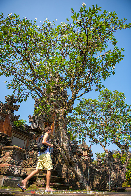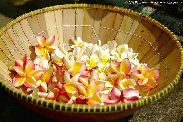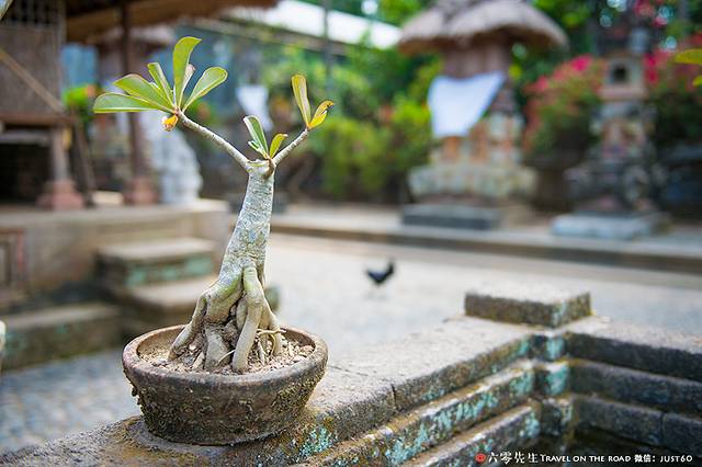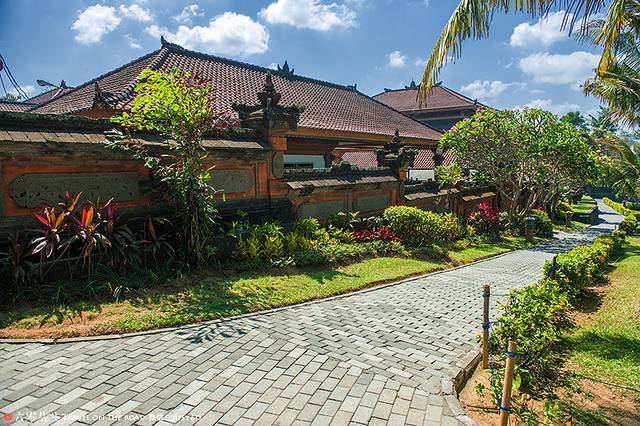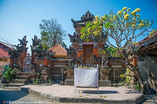 传统的巴厘岛民居都会有一个自己的小院子,每家门口都会种上鸡蛋花,不仅美观香气四溢,还有驱蚊的功效。每家每户都有一个家庭小庙,每一间睡房都不得高于自家庙宇的高度。