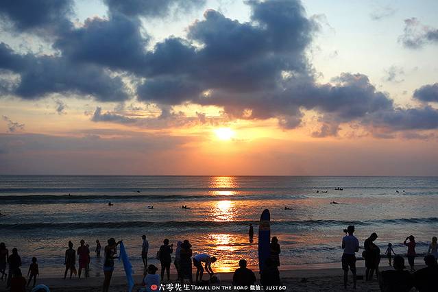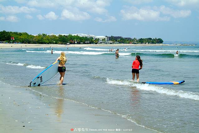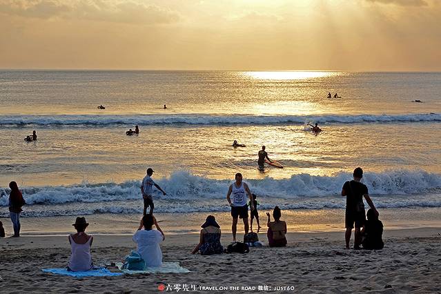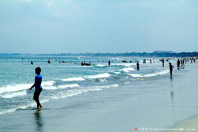 库塔海滩全是玩冲浪的游客,观赏性稍低,娱乐性较高。