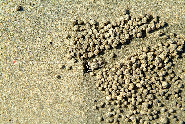 寄居蟹退潮后滚的沙球,很可爱的样子。