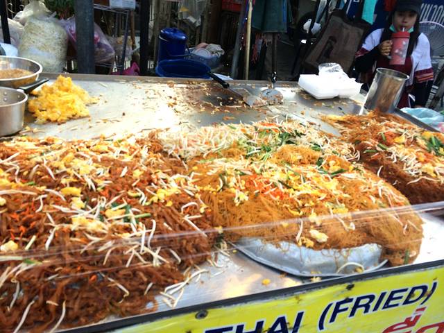 半夜2点多登机,一直飞到中午11点,因为飞机上有个人貌似突发心脏病了,所以飞机破降到曼谷,从曼谷又飞到了吉隆坡,最后从吉隆坡中转到清迈。。。。也是够折腾的了,中转吉隆坡的囧事前面也写了,反正下午四点多才到的清迈,好在出关和取款,叫车,抵达旅店入住,一切一切都很顺利,心情大好。晚上和老公去逛了清迈夜市,买了很多东西,后面才发现这里的东西小贵,和周六夜市和洛瓦瓦市场比起来,不过贵也贵不到哪儿去,心情好看什么都好,买了很多衣服,还有吃的。去了一趟711,大家懂得,看什么都想买。。。晚上吃了pad thai,就是一种泰国炒米粉,从此欲罢不能,从清迈到普吉走到哪儿吃到哪儿,这个东西太好吃了!