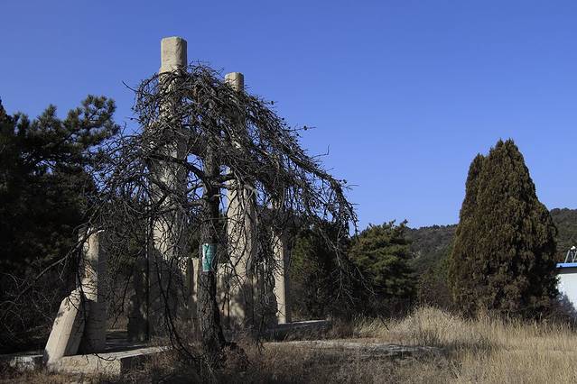 坐在可能是原来的老山门,喝着可乐,看着远处隐约可见的塔峰,足以。