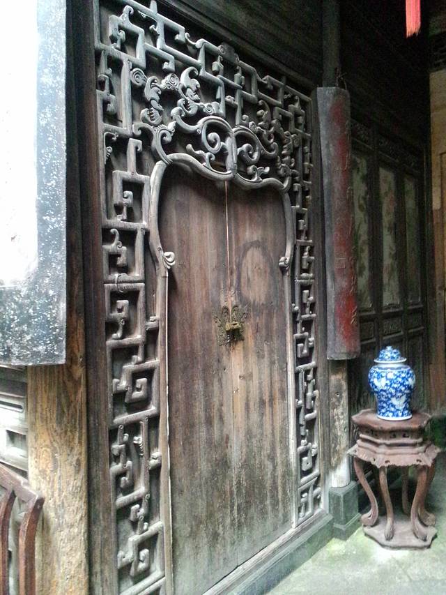 这家的房檐上是雕狮子的,表示是官宦人家。不是做官的是不让房檐雕狮子的。