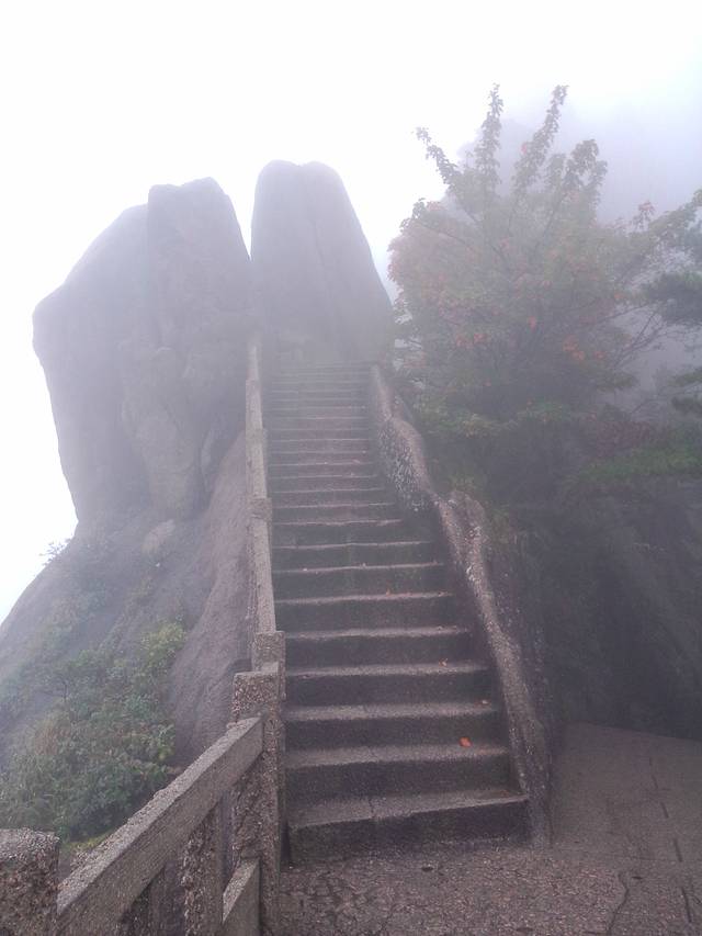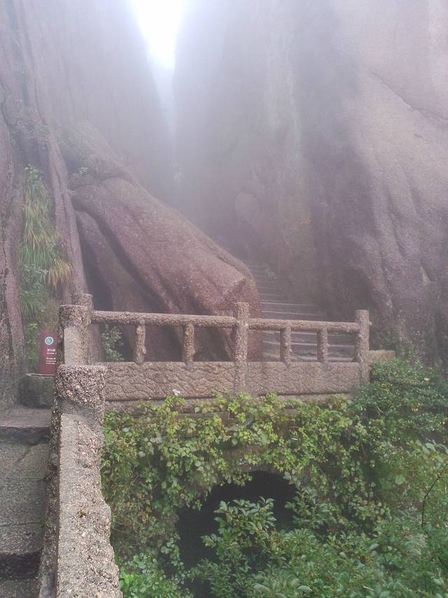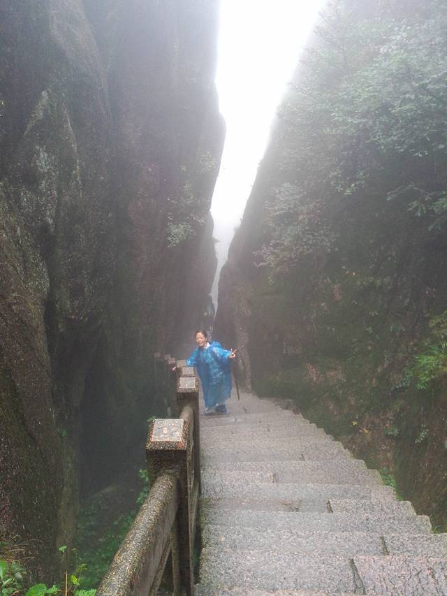 早上起来腿还是有些酸,天公不作美,今天一直都在下雨,因为都是云雾看不到风景,感觉下山的路特别长。走走停停的听着团队导游的介绍,看了一些一般般的景色,要是晴天,估计放眼望去全是美死人的@可惜了!
