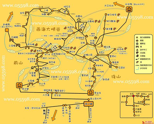 路线:云谷寺-始信峰-狮子峰-排云楼宾馆-西海大峡谷-光明顶-群峰顶-飞来石-回音壁-丹霞峰-排云楼宾馆