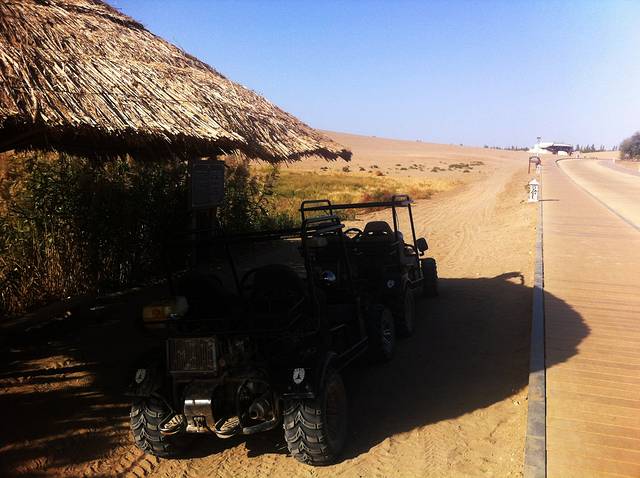 听司机说,覆盖在沙子表面那一层黑色的东西,是长年累月沉淀出来的铁,所以现在风沙少了很多,大自然真奇妙,哈哈