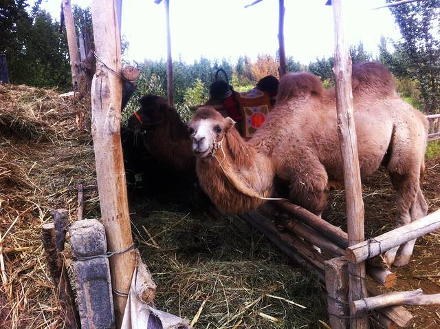 骆驼很喜欢跟人对视哦,因为靠近鸣沙山,这里很多户人家都有养骆驼。路上全是骆驼屎,不过都干了,所以也不用很担心。