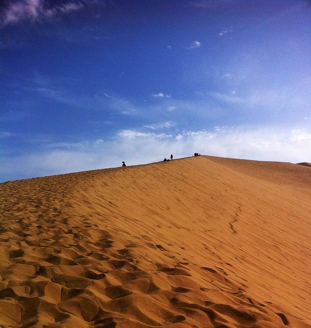 oh,我的天,我第一感觉就是:这是画出来的吗?原来沙山也可以给我一种一尘不染的感觉。那一望无际的沙山,让我一点都不想离开。