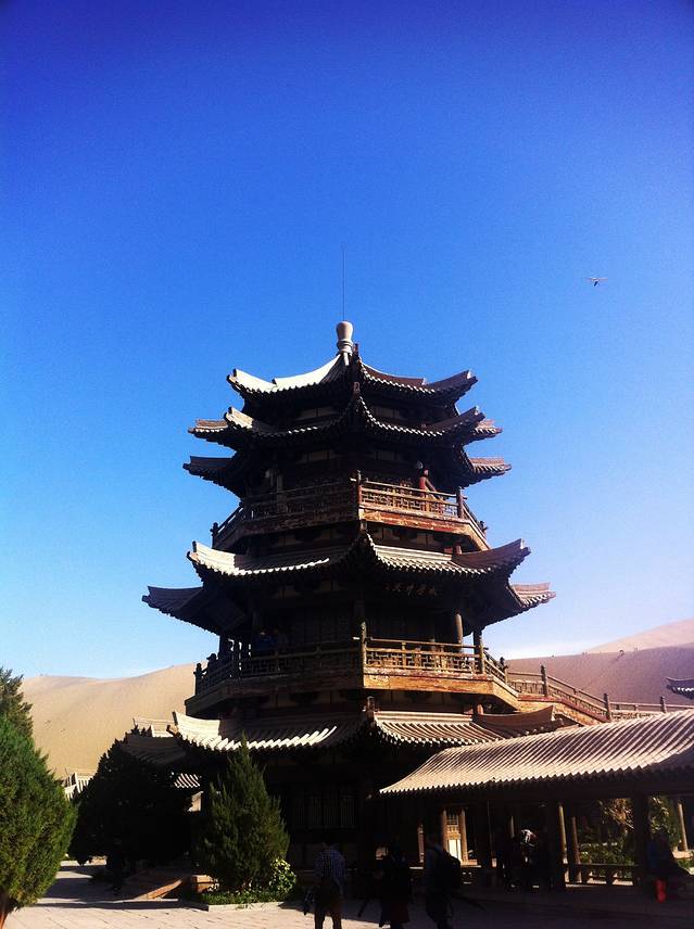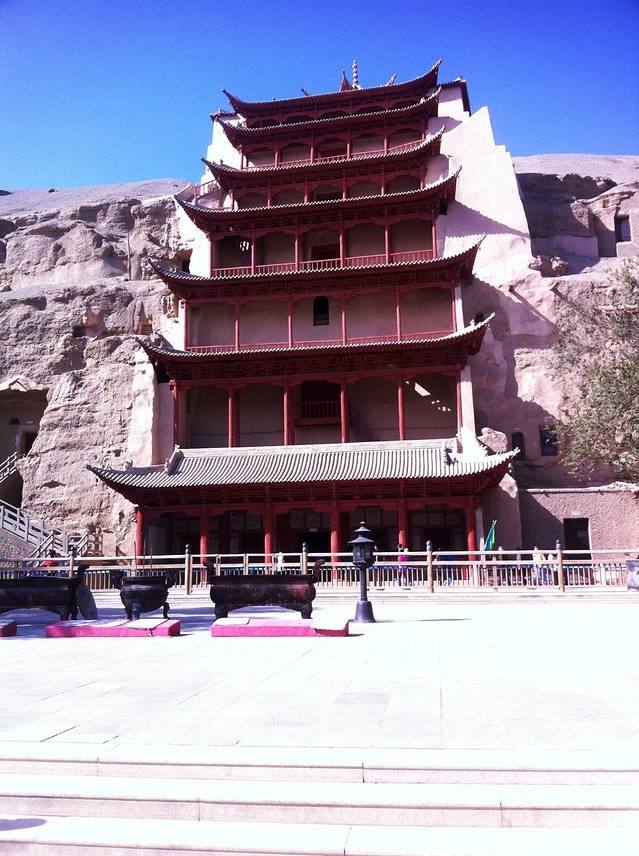 上午早早的去了莫高窟,因为听说人很多。可是我很幸运,这是不用预约的最后一天,人都走了,不用排队。讲解员在等着我。我看了8个小洞,肤浅的我只感觉我在观看有钱人的家,但是里面真的很壮观,就算那些画的配色,图案,放到如今,也一样是非常受欢迎的。我因此有种莫名其妙的感动。
