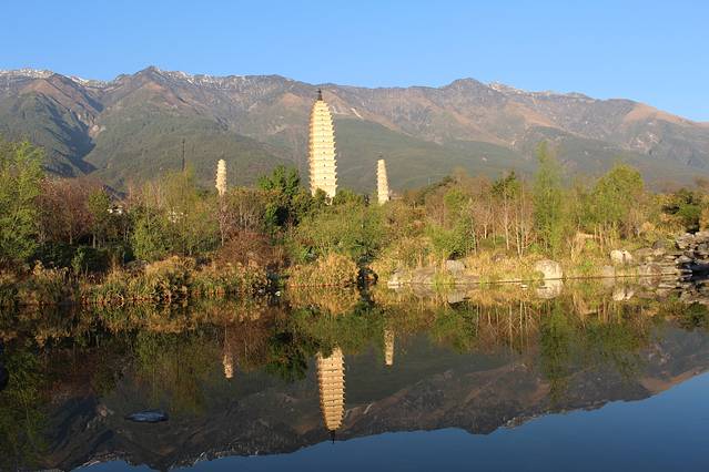 大理这边,大多是白族,管姑娘的称呼从阿诗玛变成了金花。一大早参观了崇圣寺三塔,门票在团费包含,电瓶车自费。因为心里作用,到这边就想练凌波微步