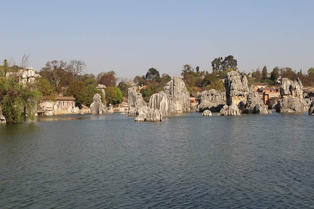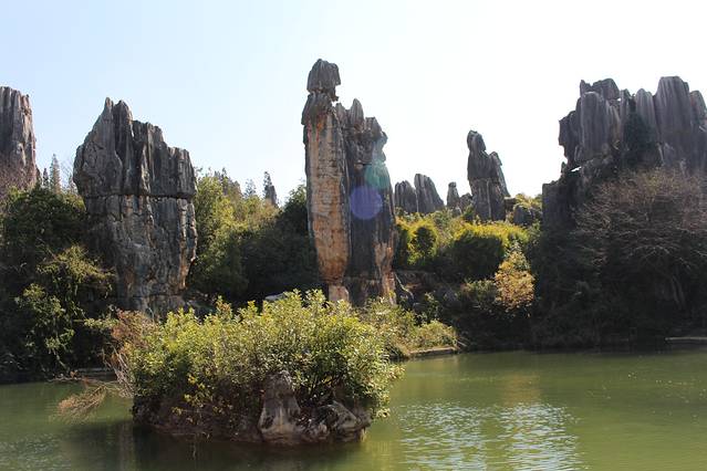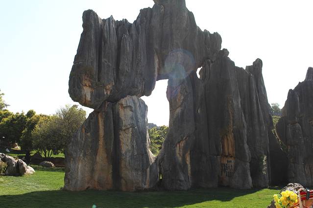 大多数的旅行团第一天都是从家乡飞到昆明,第二天去石林玩。团费包括石林的门票,但是电瓶车是要自费的。有个导游说的好,在石林你心情好用想象力可以看到好多大象鸵鸟小老鼠什么的,如果心情差,那你看到的只是一堆石头~