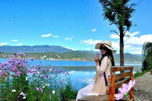 这天我们租了个电动车环湖,9月的泸沽湖实在是太美了!格桑花开了一路,阳光、白云、蓝天!😊只是辛苦前面开车的老公了!不仅要抵挡冷风,还要遮挡烈日!脸都晒脱皮了😭😭!
