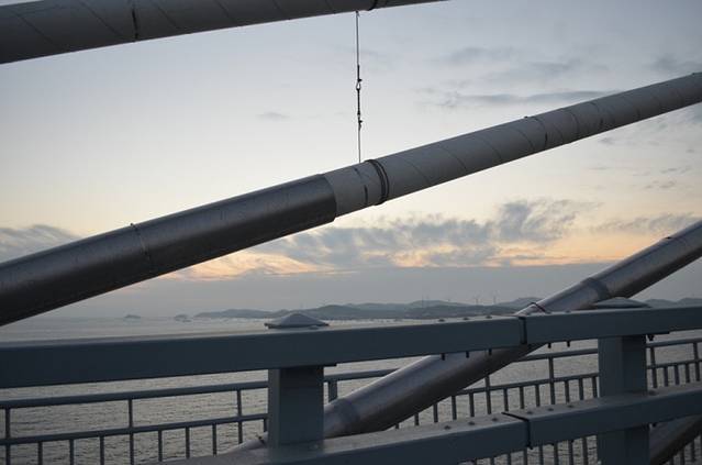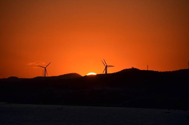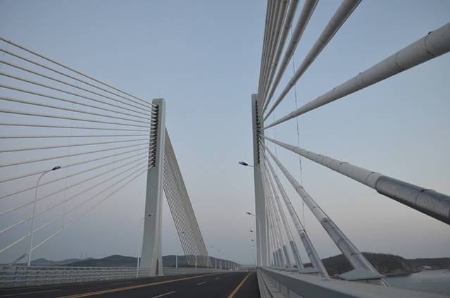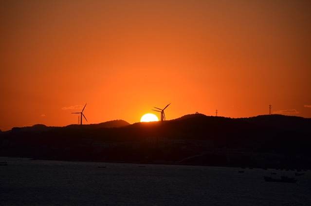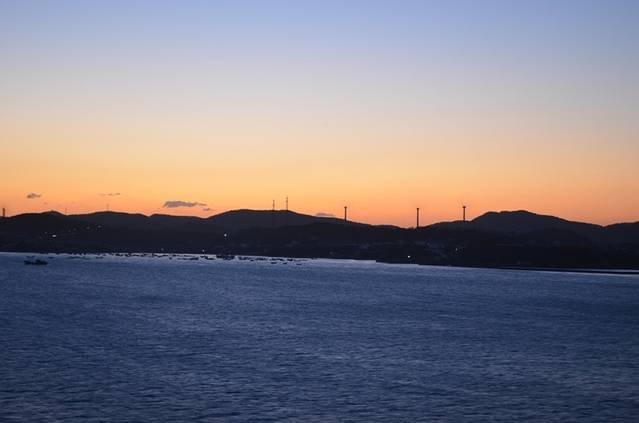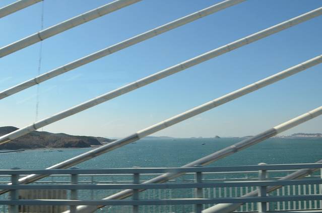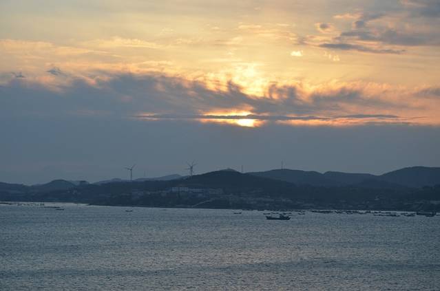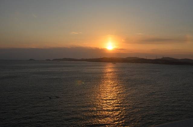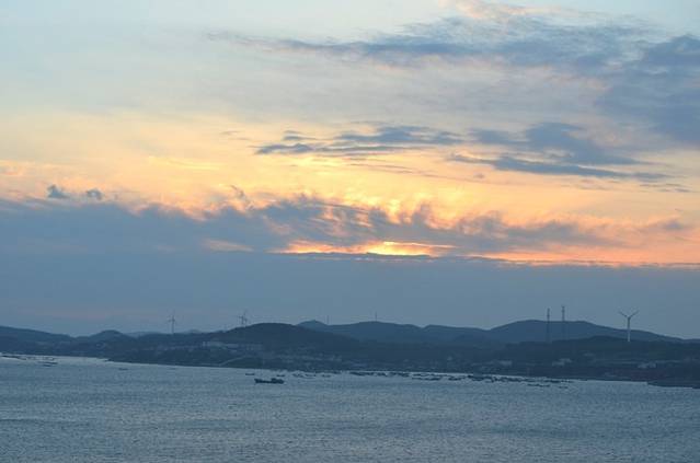 没办法,怀着忐忑不安的心情洗洗睡吧。按计划明天还要早起看日出泥。早上5点40时,出发前往长山大桥(离住处很近,走路5分钟)。感觉风比昨天大了些,但远没有达到8级,但愿今天能回去。