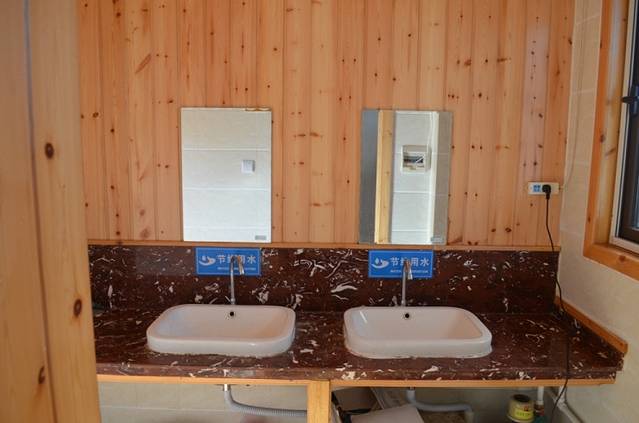 新建的公厕,相当干净,松木的墙壁还散发着清香。够4星标准了!