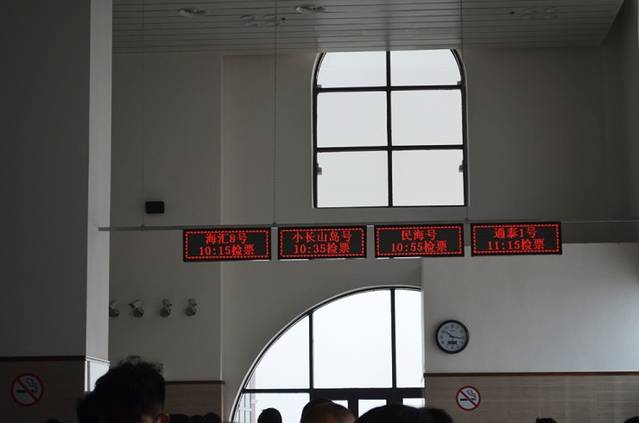 好事多磨,到县城换车时却被告知因为潮水的缘故,这班船取消了,最早是下午一点二十的。不过总算有了准信。鸳鸯港客运大楼