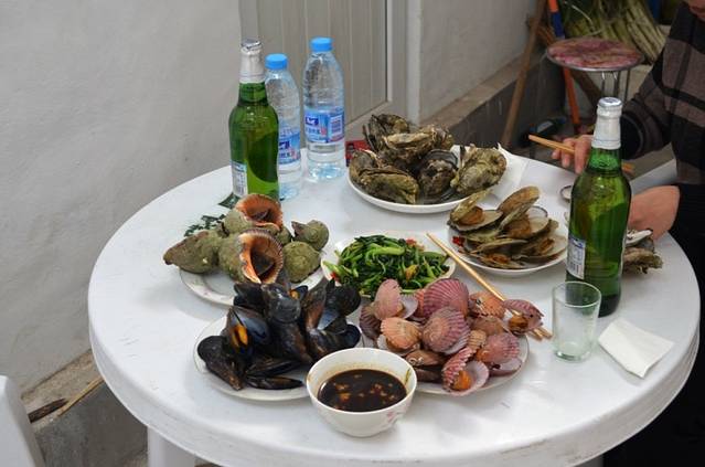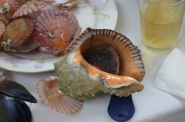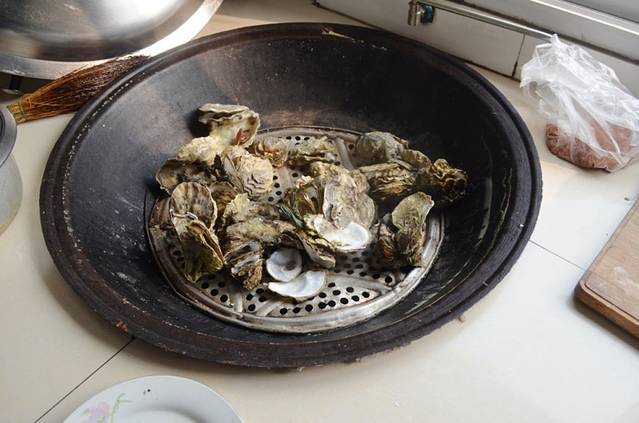 午饭:清蒸牡蛎,海虹,大小扇贝,海螺,炒青菜。除了青菜以外,海鲜大多是老板自己养的,不限量,厨房里有一大笼屉,管够。而且跟平时在饭店里吃的海货不一样,超新鲜,吃到嘴里有股淡淡的甜味