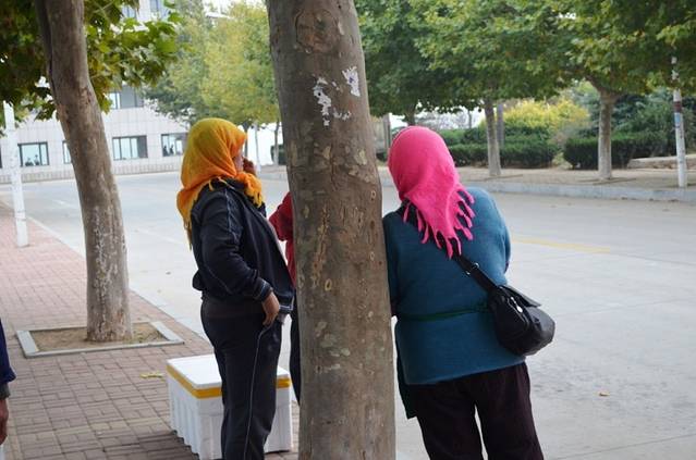 返回大长山岛的公共汽车站,几位等车的渔家大嫂。