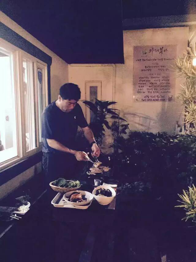 晚上强烈要求吃烤肉,所以在OMA的院子里面,OMA还请来了外援帮我们烤