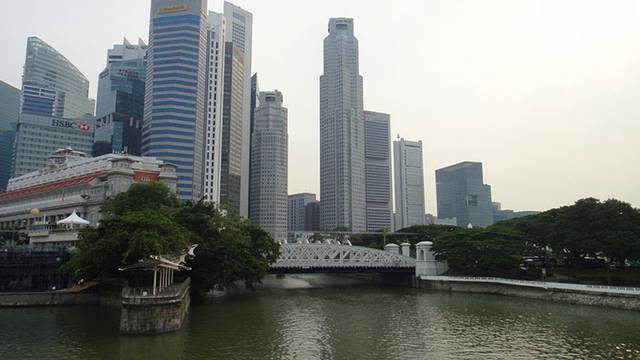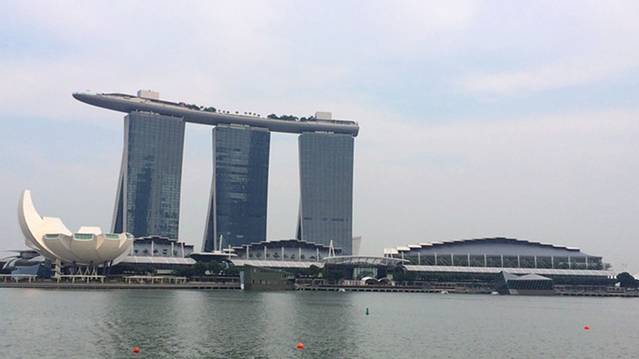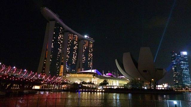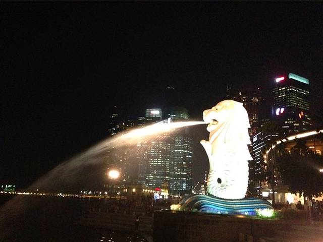 傍晚时分,前往滨海湾区游览,地铁Raffles palce出来就是新加坡河,经过鱼尾狮公园,沿着海边往金沙方向走,很舒服。