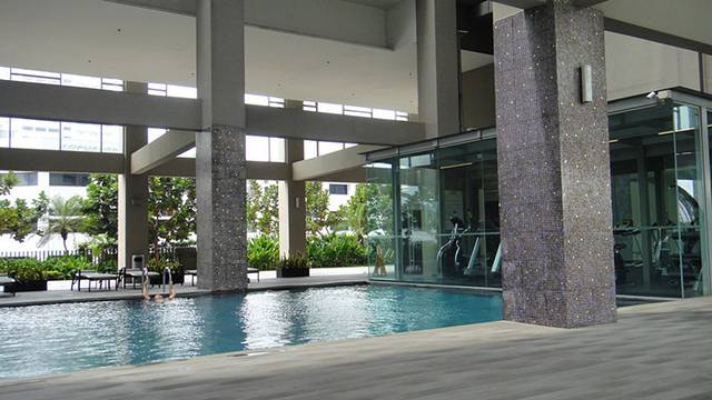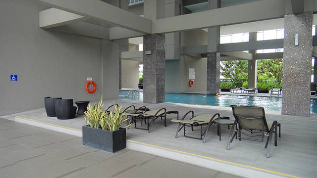 57层的无边泳池有热毛巾和水提供,设有洗手间、更衣室和很多的沙滩椅供游客休闲。