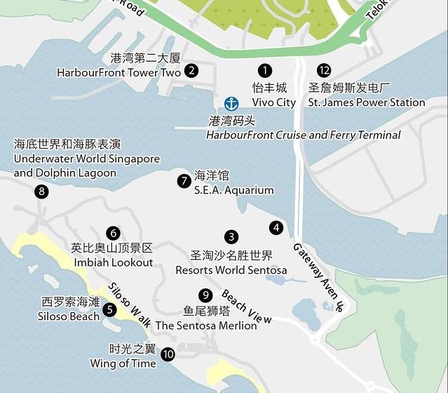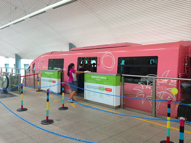 - 轻轨:在怡丰城Vivo City的三楼转乘Sentosa Express,然后在滨海站Waterfront Station下车即到圣淘沙名胜世界(去环球影城,海洋馆在此站下车),轻轨4元新币/人,进岛后可以无限次乘坐,不需票的,出岛也是免费的。