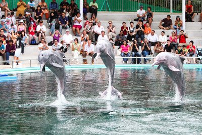 去海底世界就是为了带孩子去看看海豚表演