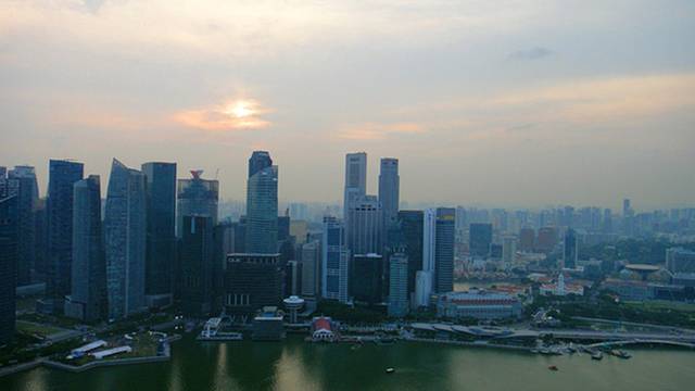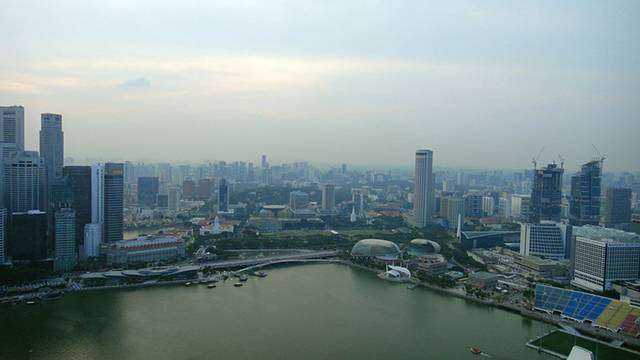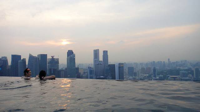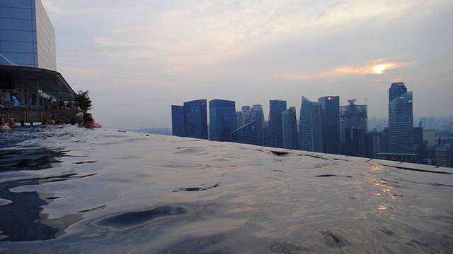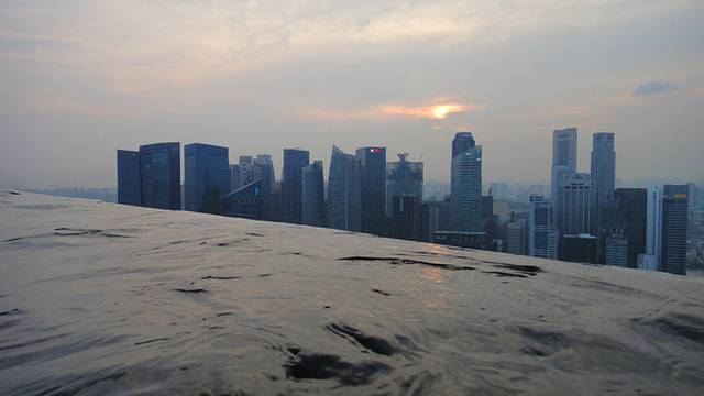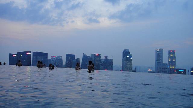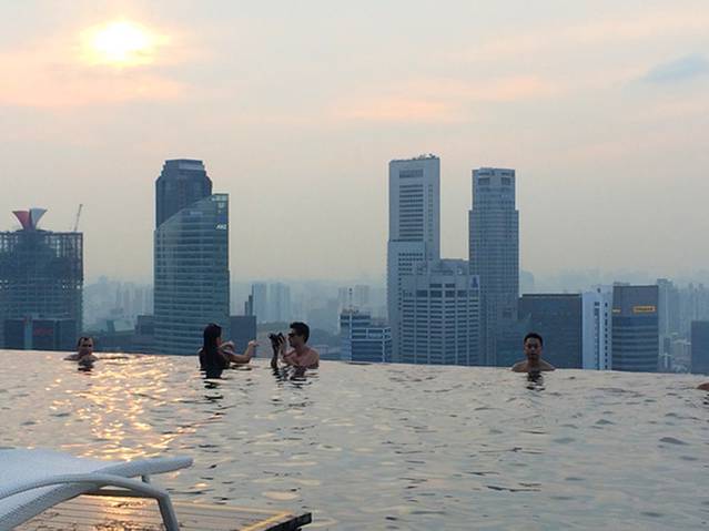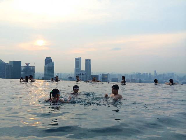 从泳池往外看就是滨海湾和新加坡的CBD.