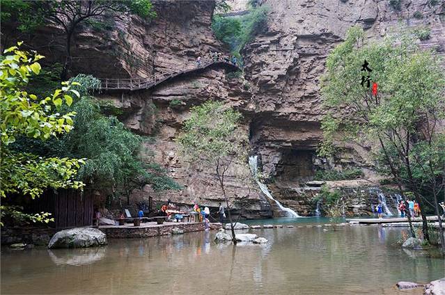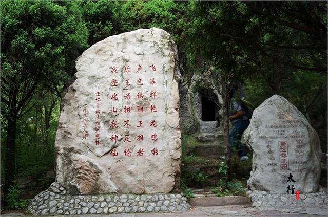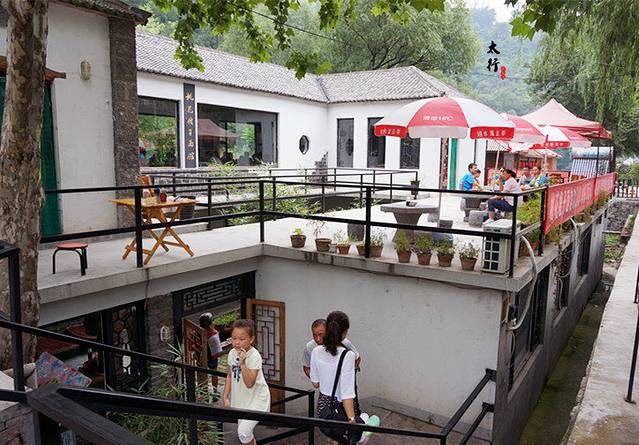 走出桃花谷,是一个广场,有吃饭的地方,有景区大巴车去太行天路。