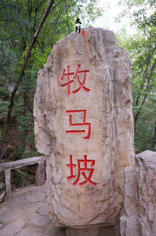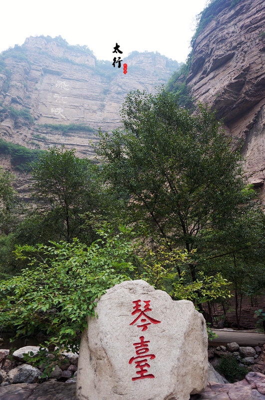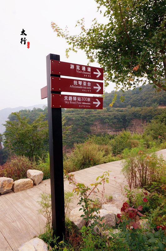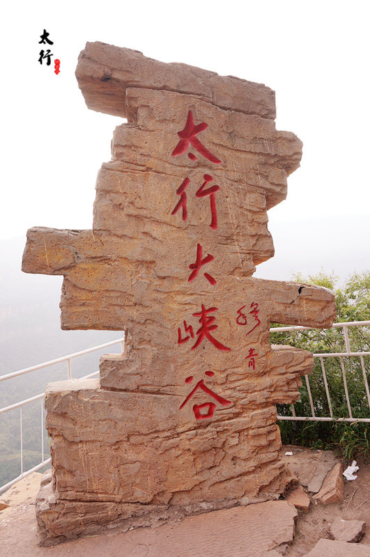 走完悬空栈道,出来是个观景台,可以看到这个写着“太行大峡谷”的石碑。